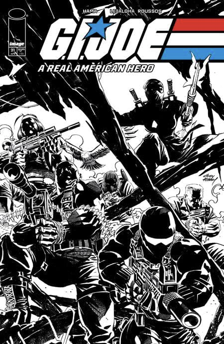 To celebrate G.I. JOE: SILENT MISSIONS month, experience the groundbreaking “Silent Interlude” from writer/artist LARRY HAMA! This legendary issue features a Snake-Eyes solo mission, the first appearance of Storm Shadow, and a full-length, action-packed story with NO DIALOGUE.